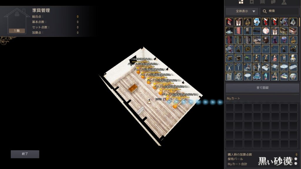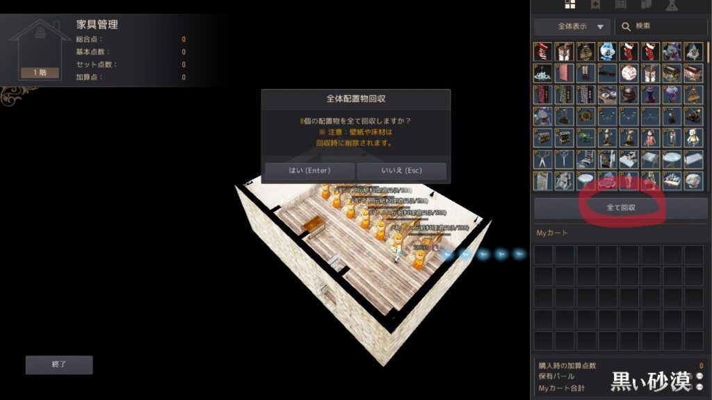 赤丸のとこにすべて回収があるのでこれを押したら家にある物がすべて回収される